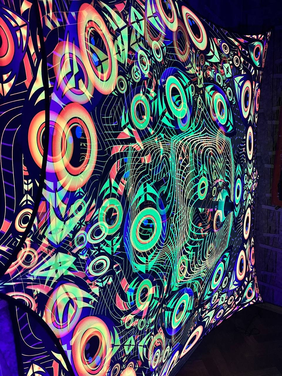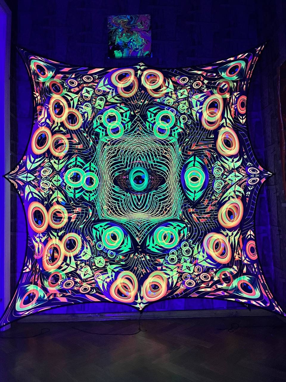 We specialize in Unique wall decor, Wall art, funky wall art, trippy poster, Psychedelic fabric, uv canopy, dj booth, dj stage, uv tapestry, psychedelic canopy, blacklight tapestry, sacred geometry tapestry, festival canopy, sacred geometry wall art, psytrance decor, Festival Installations, Installations with Mesh, UV Prints, Lycra Supplex Prints, Psychedelic Shamanic UV Art, Neon sign art, sacred geometry, funky wall art, large wall hanging, trippy poster, printable art, wall tapestry, party decorations, funny tapestry, music wall art, tapestry aesthetic, trippy art, space poster, abstract art, festival accessories, extra large wall art, etc.