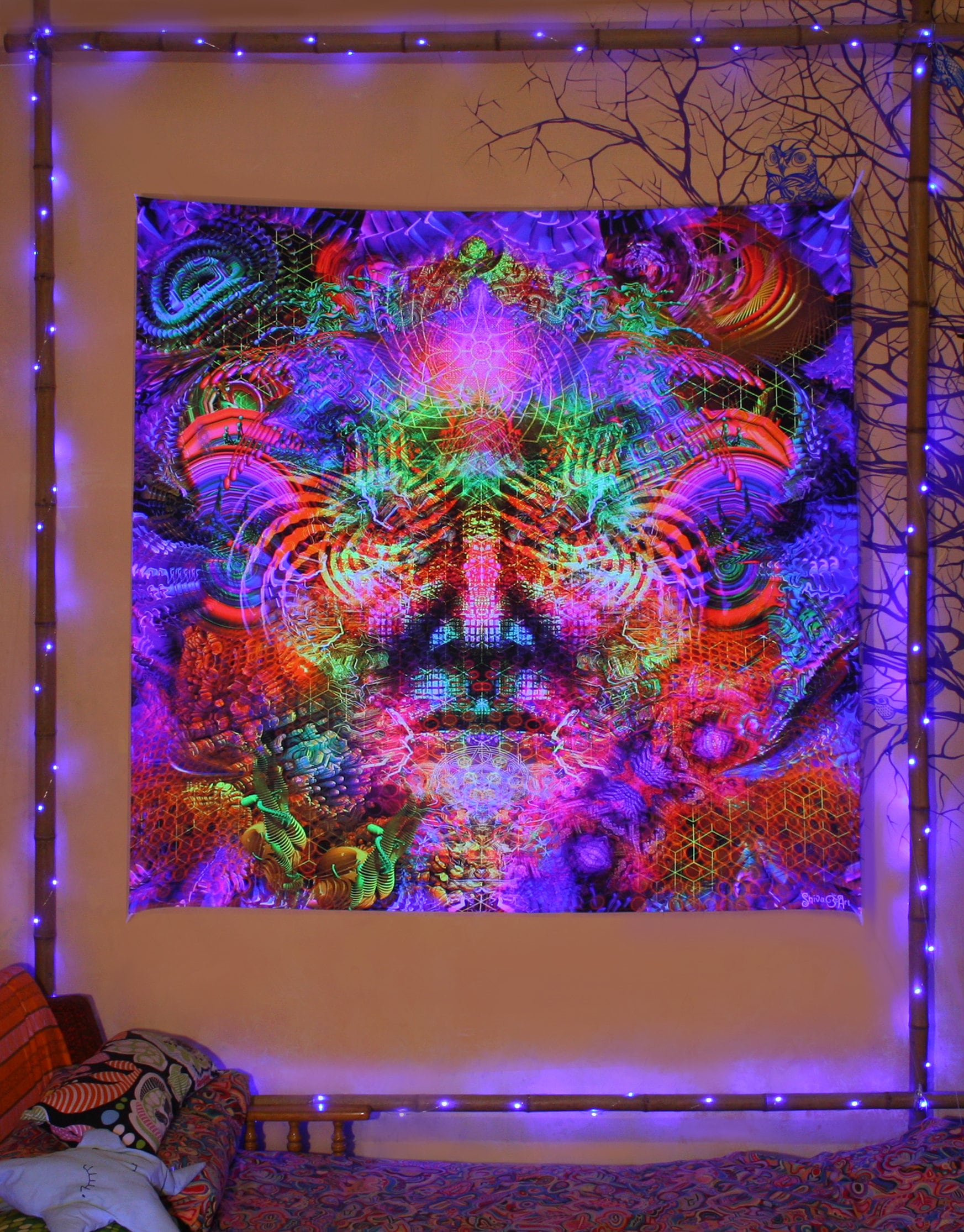 Fluorescent tapestry "YAKEKAN" – UV psychedelic art!