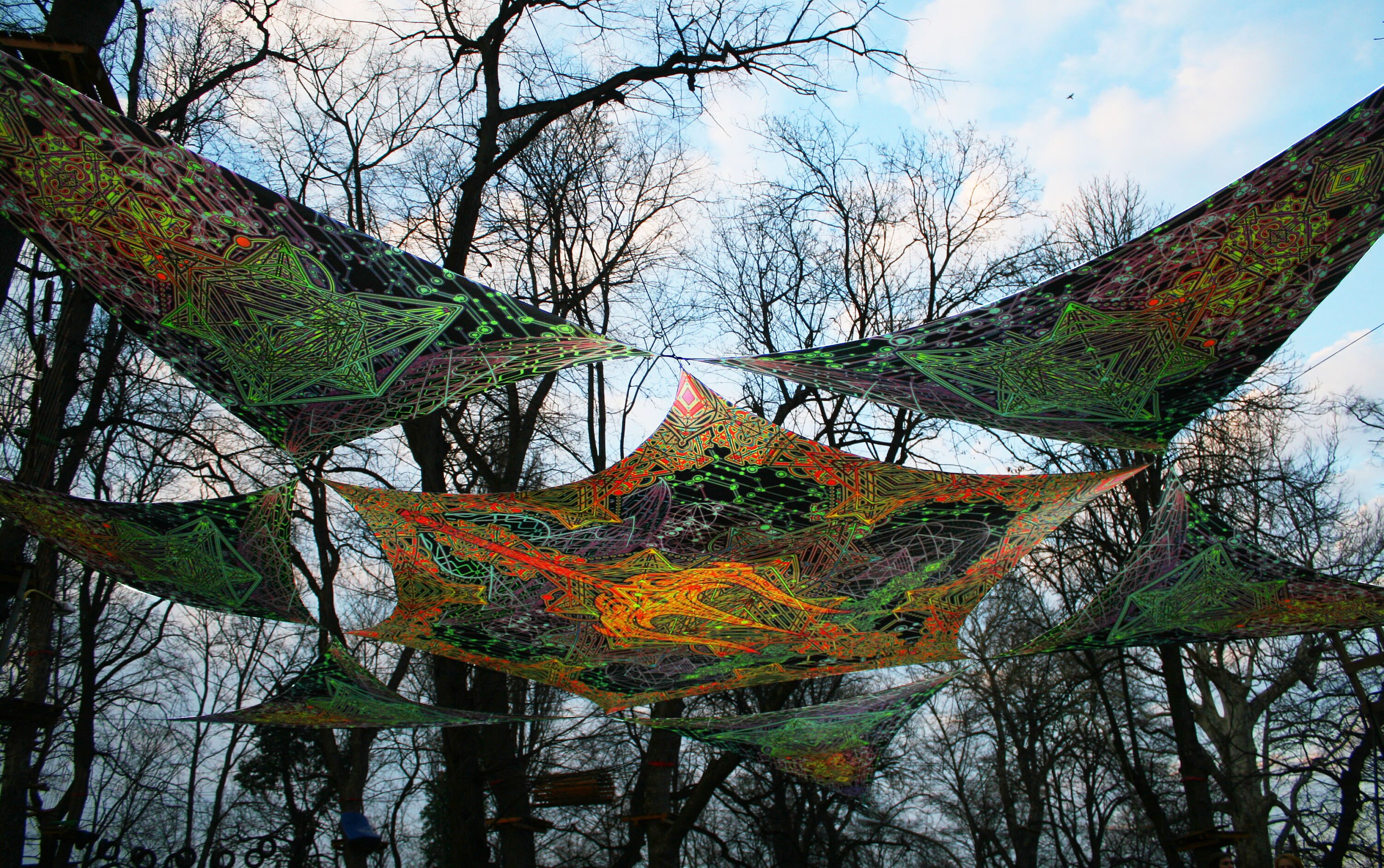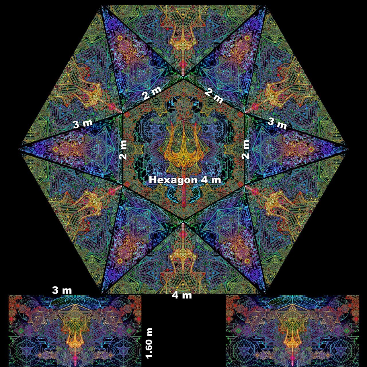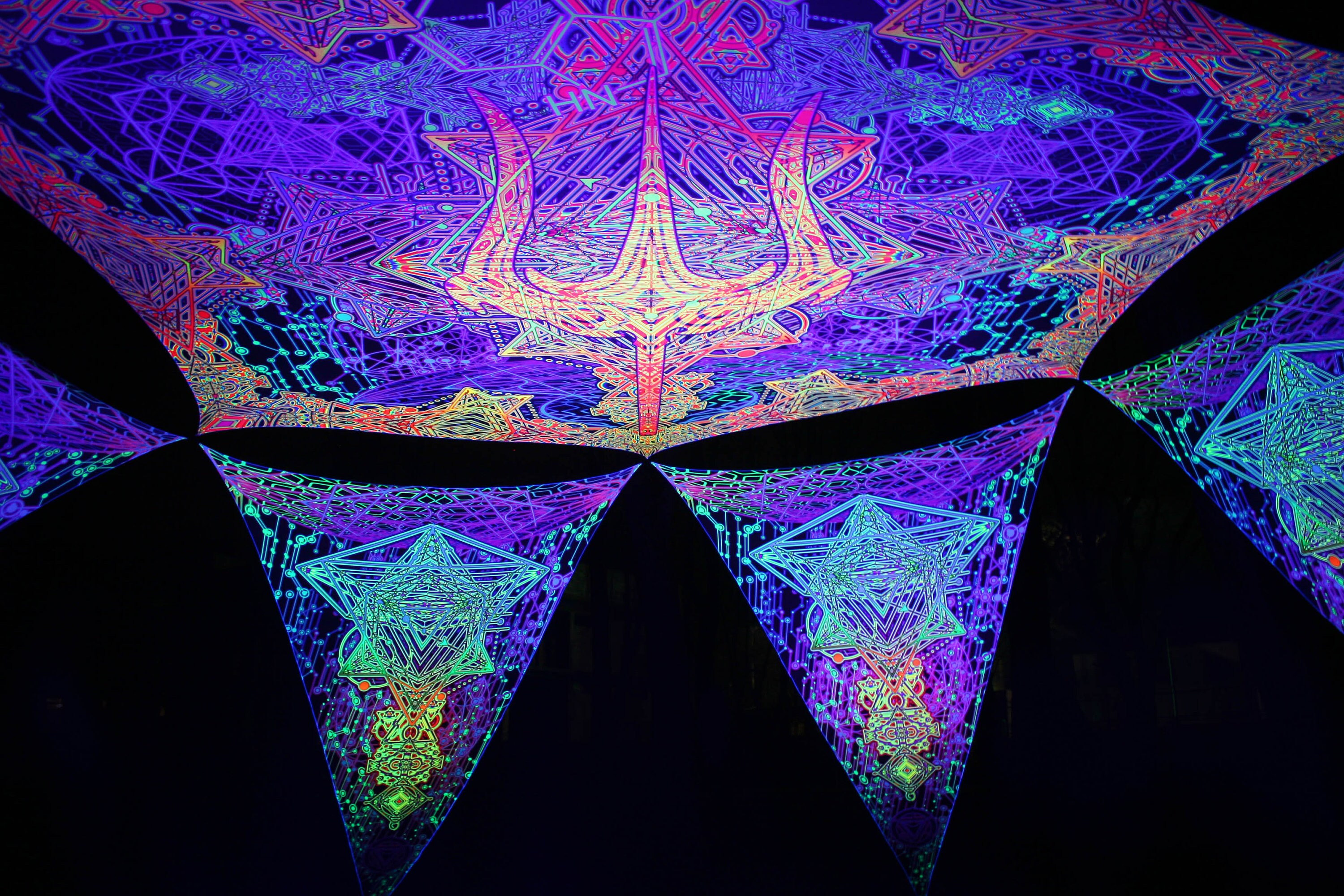 Perfect for parties and festivals decorations, uv-reactive dj stage or DJ Booth, art installation, outdoor party decor Psytrance.