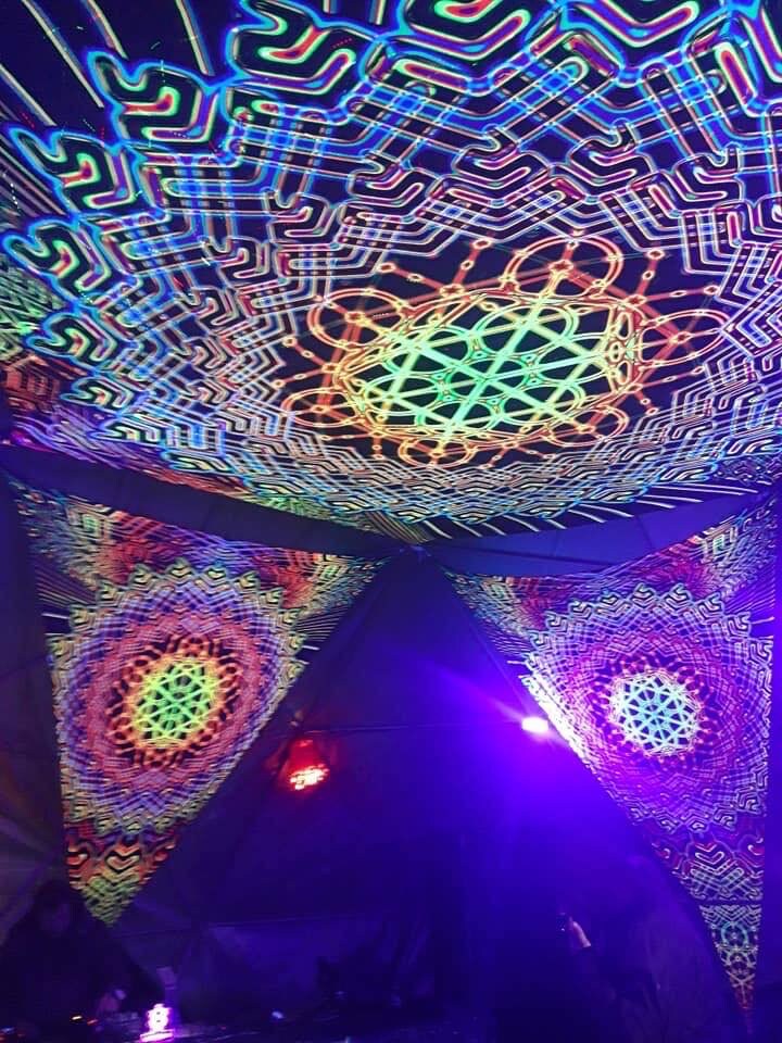 Perfect for parties and festivals decorations, uv-reactive dj stage or DJ Booth, art installation, outdoor party decor Psytrance.