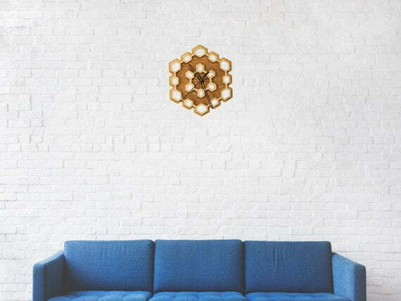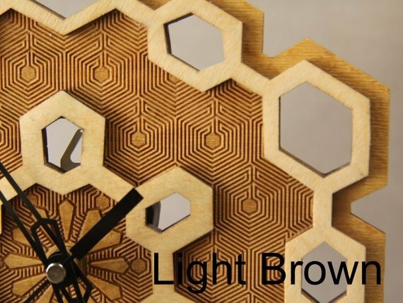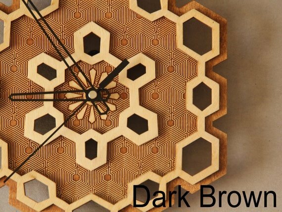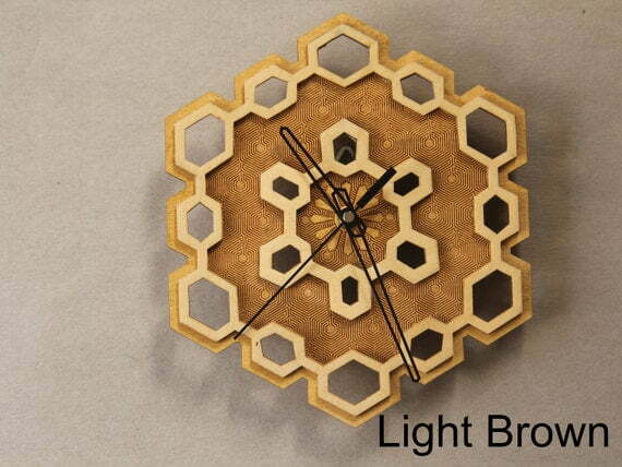 This clock has 2 layers of 3mm birch plywood which has been stained on different brown shades in order to highlight the complexity of the design. It’s handmade to a very high standard and we have put a lot of love to design and assembly this piece in our studio in Greece.