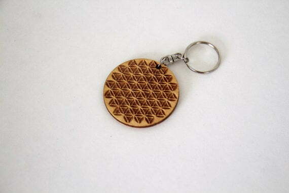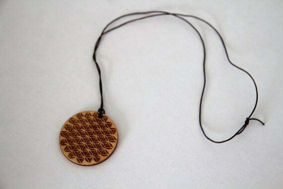 wooden pendant/keychain, hippie necklace, Flower of Life necklace, boho necklace, unisex necklace