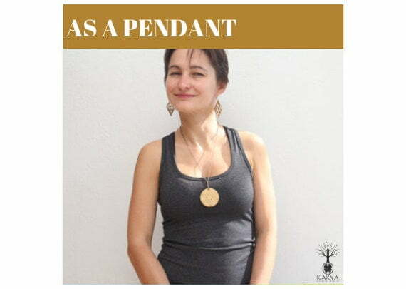 The medallion comes with dark brown waxed cotton cord. The cord has slip knots which allow you to adjust the length of the pendant. Maximum length: 66 cm/ 26 inches.