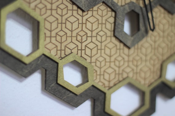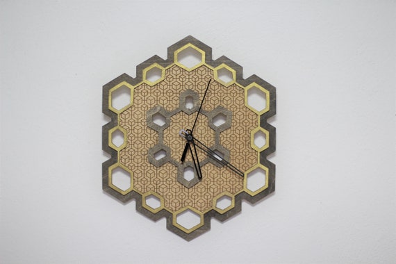Adorn your living room/bedroom/study room with our sacred geometry wooden hexagons wall clock!